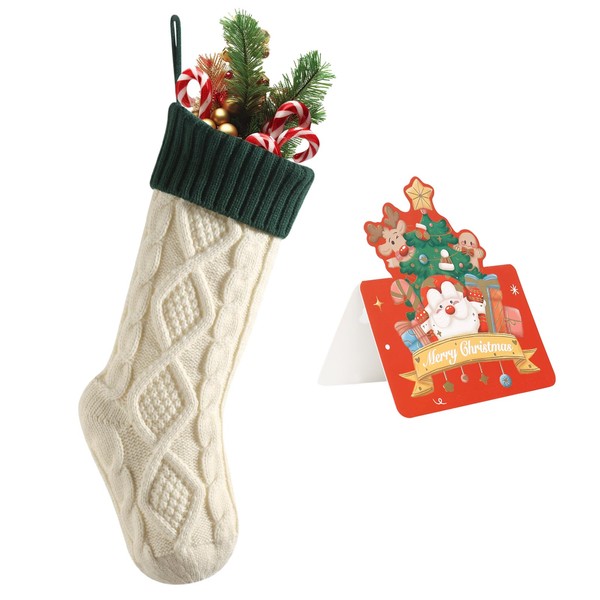 meioro Christmas Stockings, 46 cm Large Cable Knitted Christmas Socks, Colour Contrast Christmas Stocking Decoration for Fireplace, Family, Holiday Party, Festival Decorations with Greeting Card