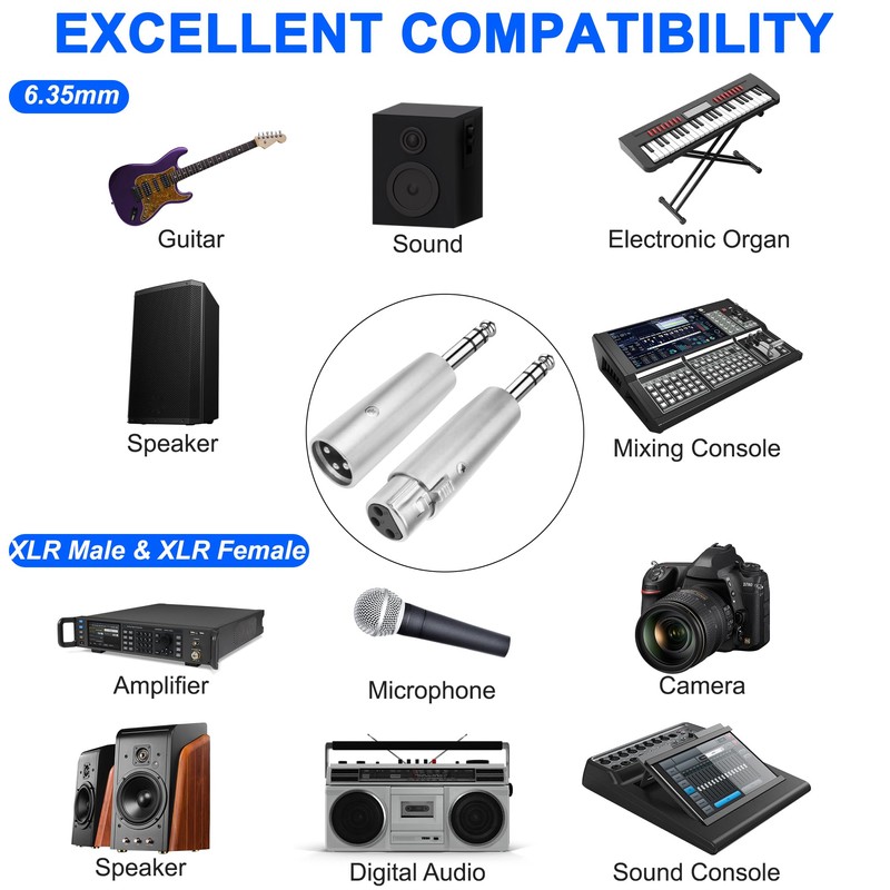- ❤ Breite Kompatibilität: XLR 3Pin auf 6,35 mm TRS Adapter ist kompatibel mit Lautsprecher, Mikrofon, Effektor, Mixer, Equalizer, Verstärker und anderen Audiogeräten mit 6,35 TRS und XLR-Anschluss. Sie können optimale Signalübertragung genießen.