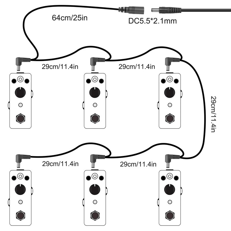 - 【DC Splitter Cable】 Der Drahtdurchmesser des Kabels beträgt 22AWG, 6 Rechtwinkelstecker machen Ihre Verbindung geordnet und machen Ihre Leiterplatte ordentlich und eng. Der maximale Abstand zwischen jedem Stecker beträgt 29cm, was lang genug ist, um Pedale zu versorgen, die auf verschiedene Weise auf einem Pedalbrett oder auf dem Boden organisiert sind. Helft sauber Dinge, und weniger Drähte hängen herum.