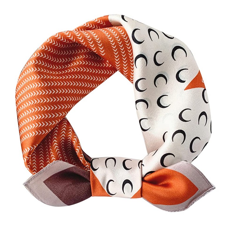 MEISEE Pure Mulberry Silk Scarfs Women Small Square Scarf 21" x 21" Breathable Lightweight Neckerchief Printed Headscarf (Orange geometry)