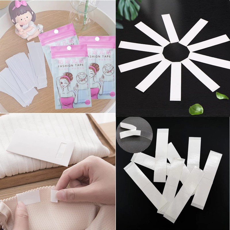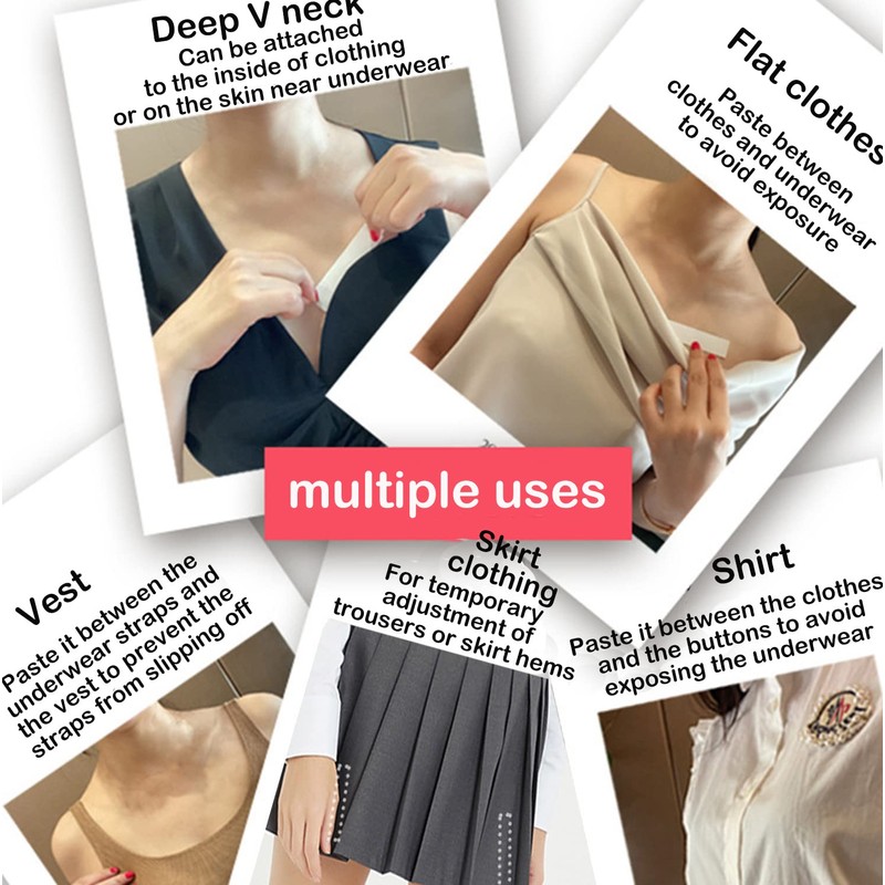 - 【Protect clothing from damage】Using metal pins is easy to leave a small hole in the clothes or skirts, making your clothes unsightly. This double sided tape not only keeps your clothes from any damage, but also perfectly avoids Those embarrassing situations arise, Such as slipping shoulder straps or sagging necklines, etc.