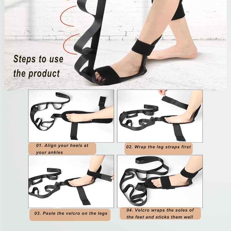 • Easy To Stretch: The strap features 6 loops for personal control of each stretch. Stretching strap for calf stretch leg exerciser made of a strong, sturdy, non-elastic polyester canvas strap with an extra-wide foot strap. This leg and foot stretcher is fit for most adult shoe sizes
