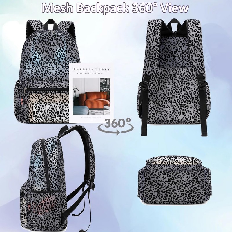 Meisohua Mesh Backpack for School Girls Semi-Transparent Backpacks for Kids Leopard Print See Through Teen Girls Daypack with Storage Bag 2 in 1 Set