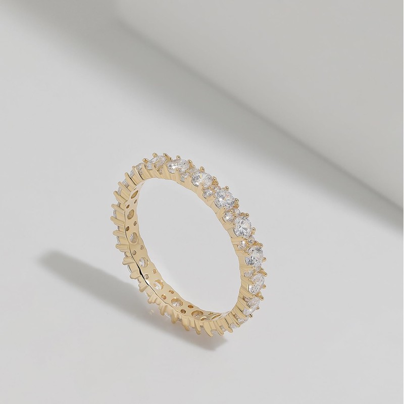 Meissa 925 Sterling Silver Wedding Bands for Women Gold Plated Eternity Stackable Engagement Ring Cubic Zirconia Diamond Ring Size 5.25, Gold