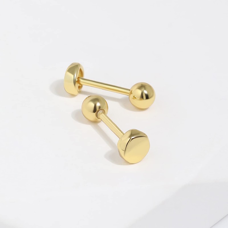 Meissa Ball Screw Back Earrings 925 Sterling Silver Studs Safety Ball Back Sleep-On Stud Earrings for Men Women Unisex Hypoallergenic (Rose Gold) (01_Silver(3.6mm Circle))