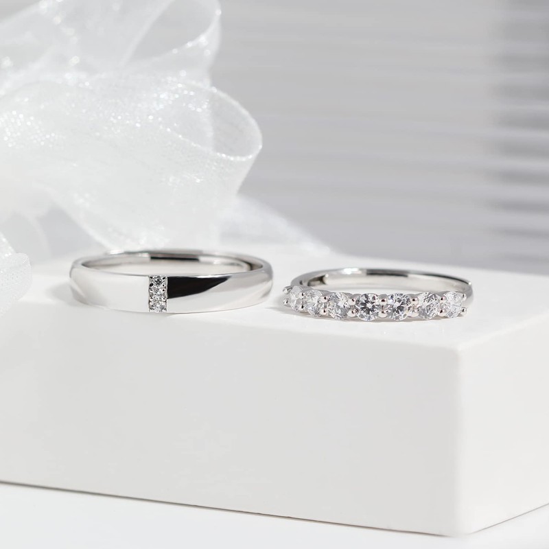 Meissa Couple Rings Sterling Silver Dainty Wedding Bands Men and Women Promise Rings Cubic Zirconia Matching Ring Size Adjustable (3.8mm Width)