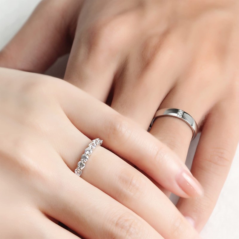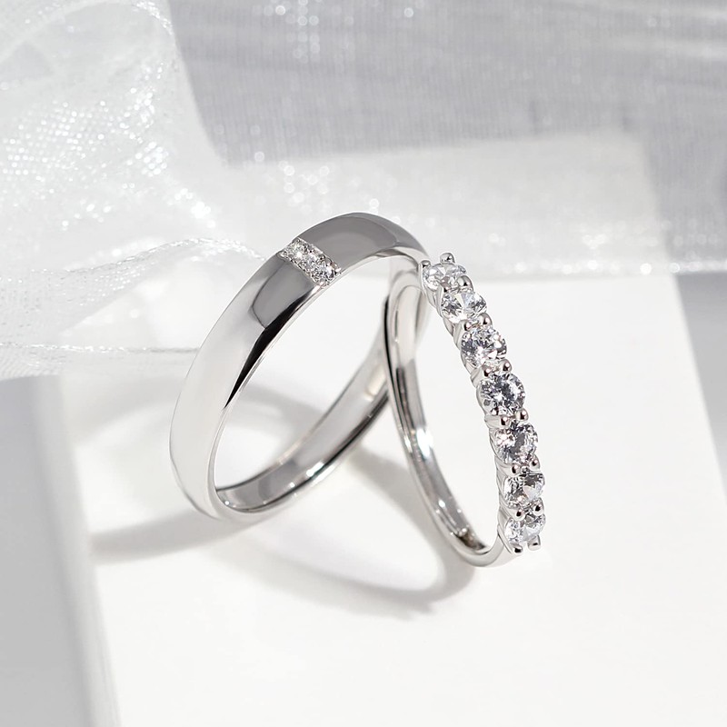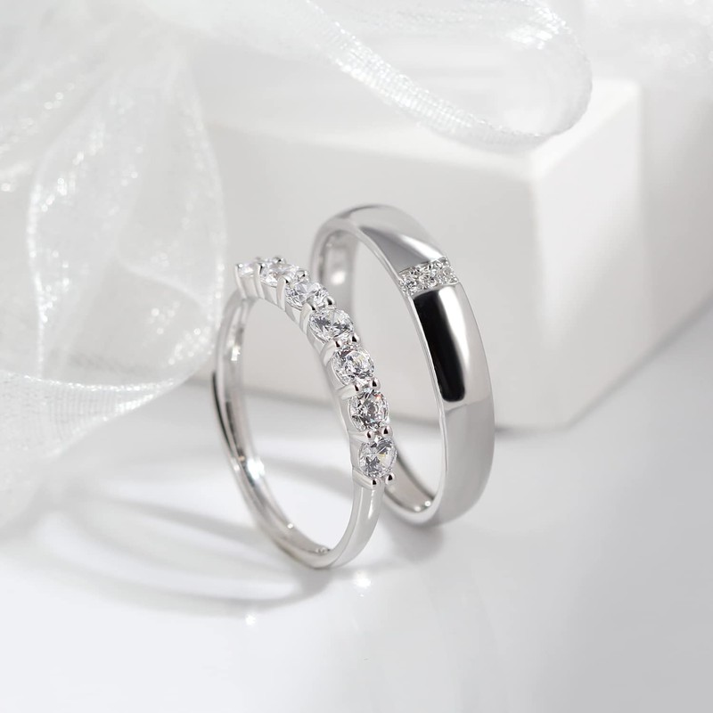 Meissa Couple Rings Sterling Silver Dainty Wedding Bands Men and Women Promise Rings Cubic Zirconia Matching Ring Size Adjustable (3.8mm Width)