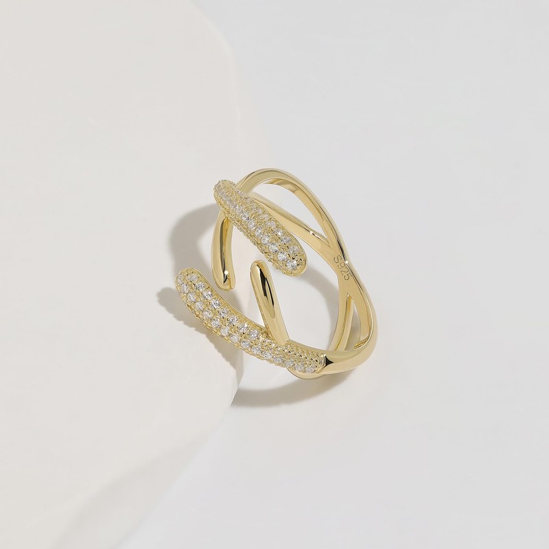 Meissa Damen Statement Ring 925 Sterling Silber Verstellbarer Kreuzring Eleganter Chunky Bandring in Roségold Schmuck für Valentinstag Hochzeitstag Geburtstag Freundin, Roségold