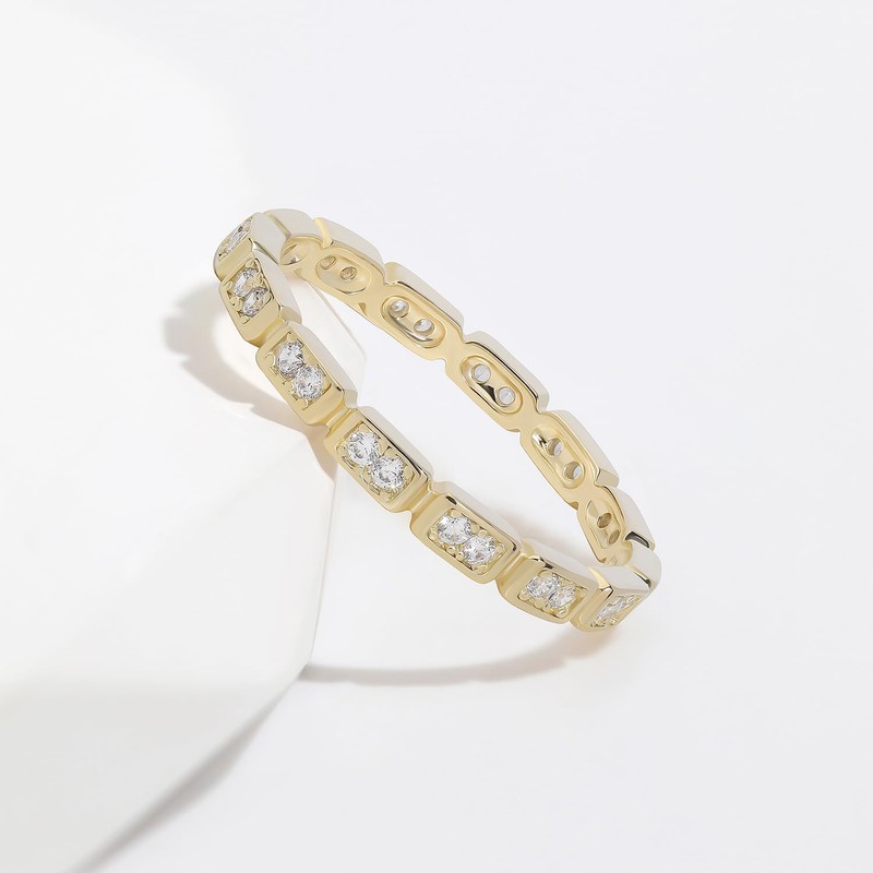 Meissa Silver Thumb Rings for Women, Cubic Zirconia Stackable Eternity Band, Gold Plated Stacking Pinky Rings, Minimalist Thin Stack Ring Wedding Band, Gold, M 1/2