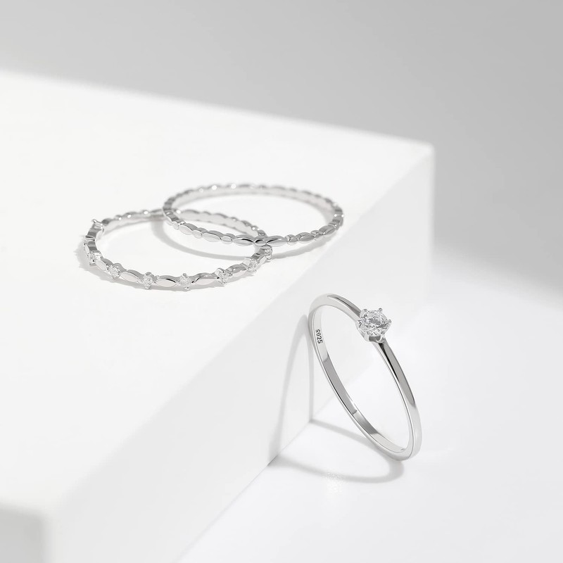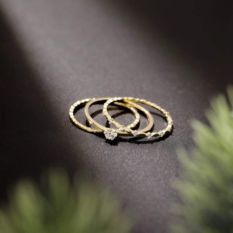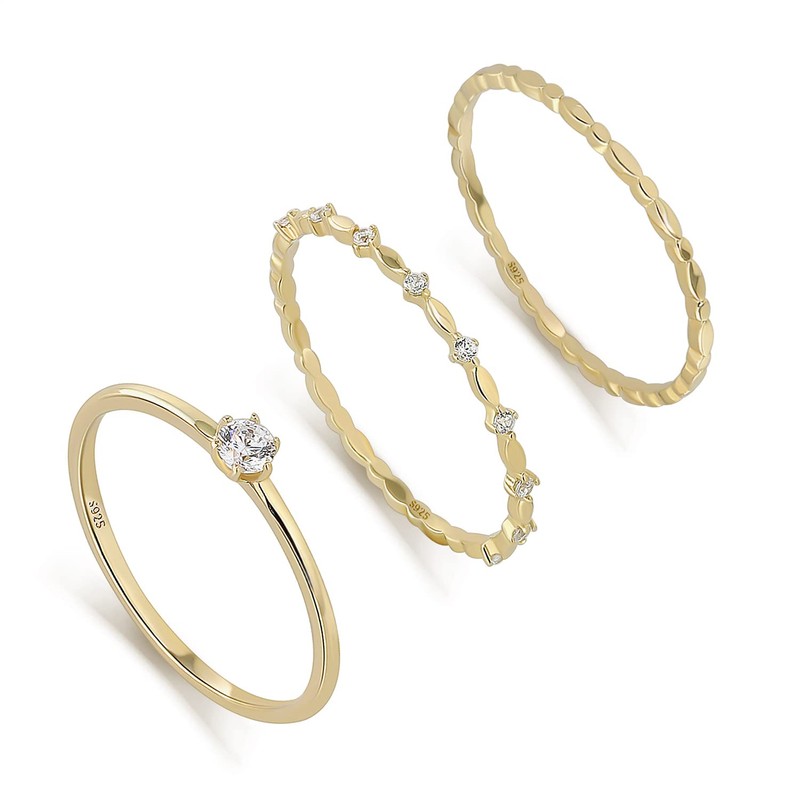 Meissa Thin Stackble Ring Set of 3 Pure Silver Stacking Rings for Women Dainty Gold Ring Minimalist Diamond Ring Set (Gold, M 1/2)