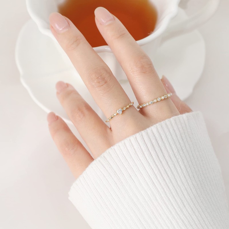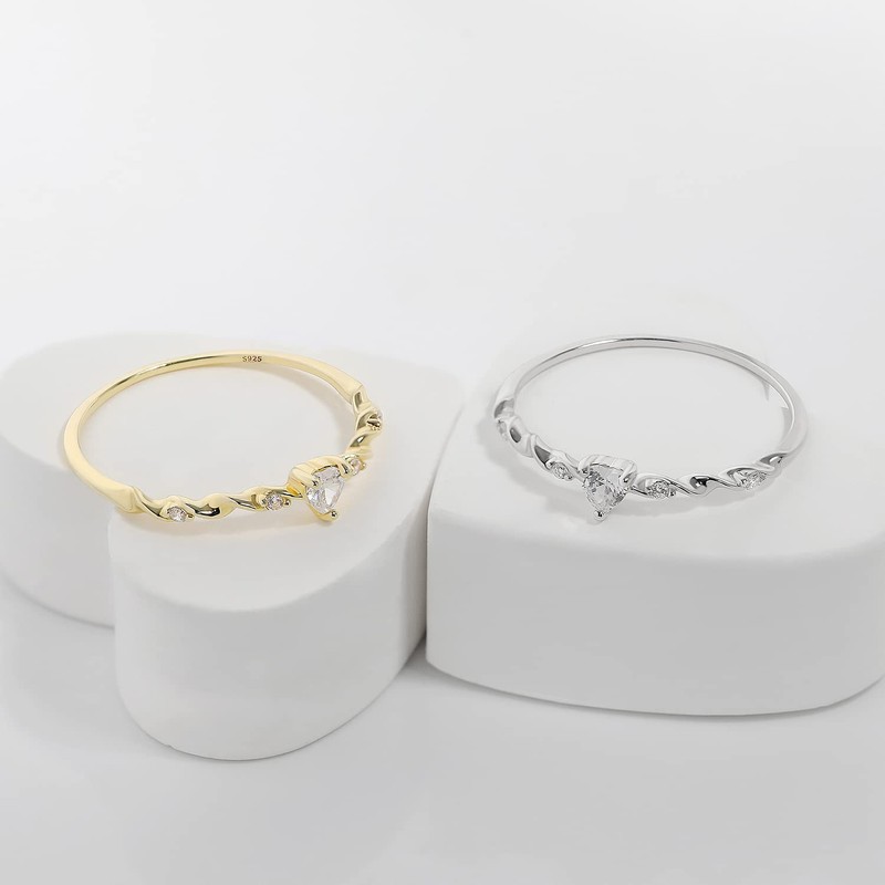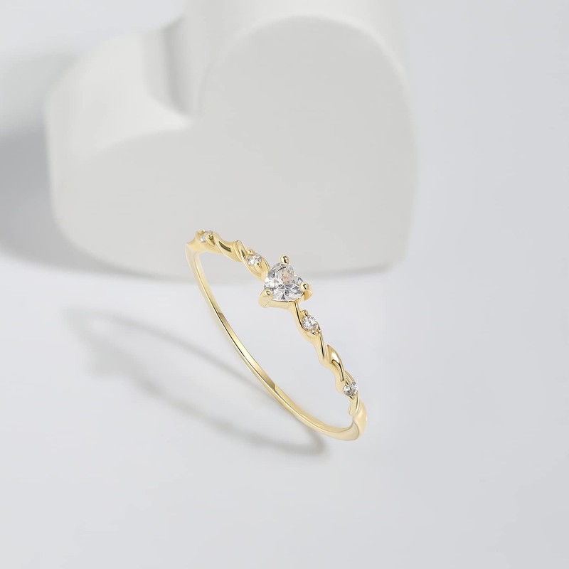 Meissa Tiny Heart Ring Stacking Dainty Cute Ring Sterling Silver Minimalist Ring Friendship Matching Stackable Diamond Gold Ring (Gold, 9.5)