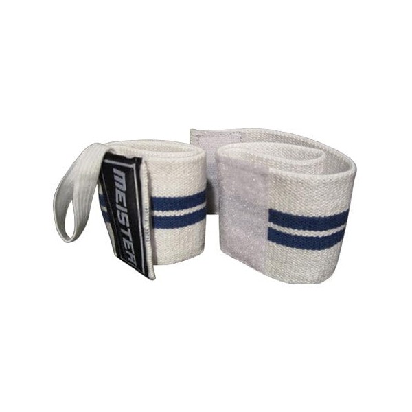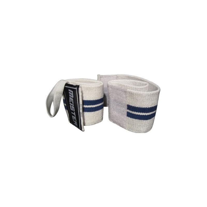 Meister Elastic Support Lifting Wrist Wrap w/Thumb Loop - White w/Blue Stripe