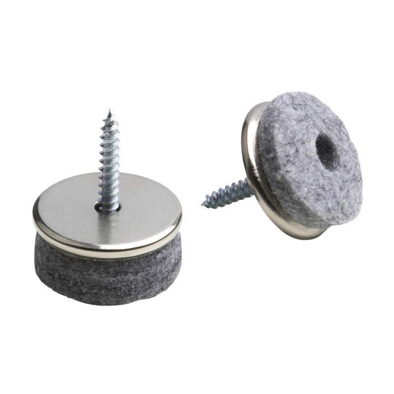 - Product details: application: parquet / laminate / tiles | installation: with screw | material: felt / metal | dimensions: diameter 24 mm | felt thickness: 7.5 mm | base colour: silver | felt colour: grey | contents: 16 pieces