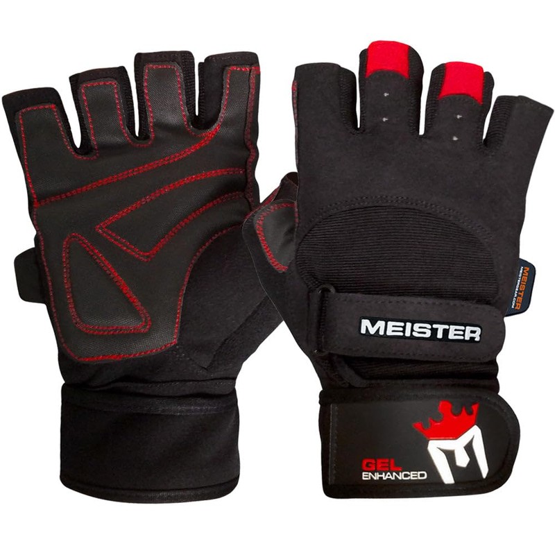 Meister Wrist Wrap Weight Lifting Gloves w/Gel Padding - Black/Red - Medium