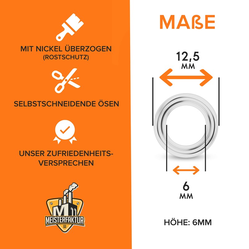 Meisterfaktur 500 Eyelets - Suitable for Meisterfaktur Eyelet Pliers - Ideal for Fabrics, Canvas, Curtains, Tarpaulins and Banners (6 mm)