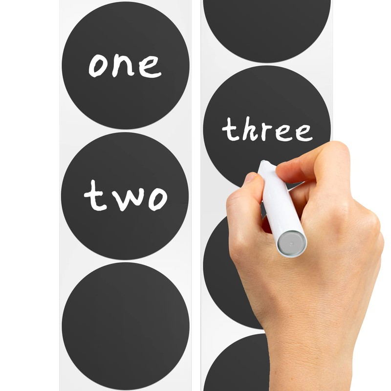 - Writable: You can write down any information easily with pernanent marker, and they can stick firmly on any flat surface, such as floor, table, wall, moving boxes, files, notebooks, calendars, jars, papers, envelopes, letters, chalkboard