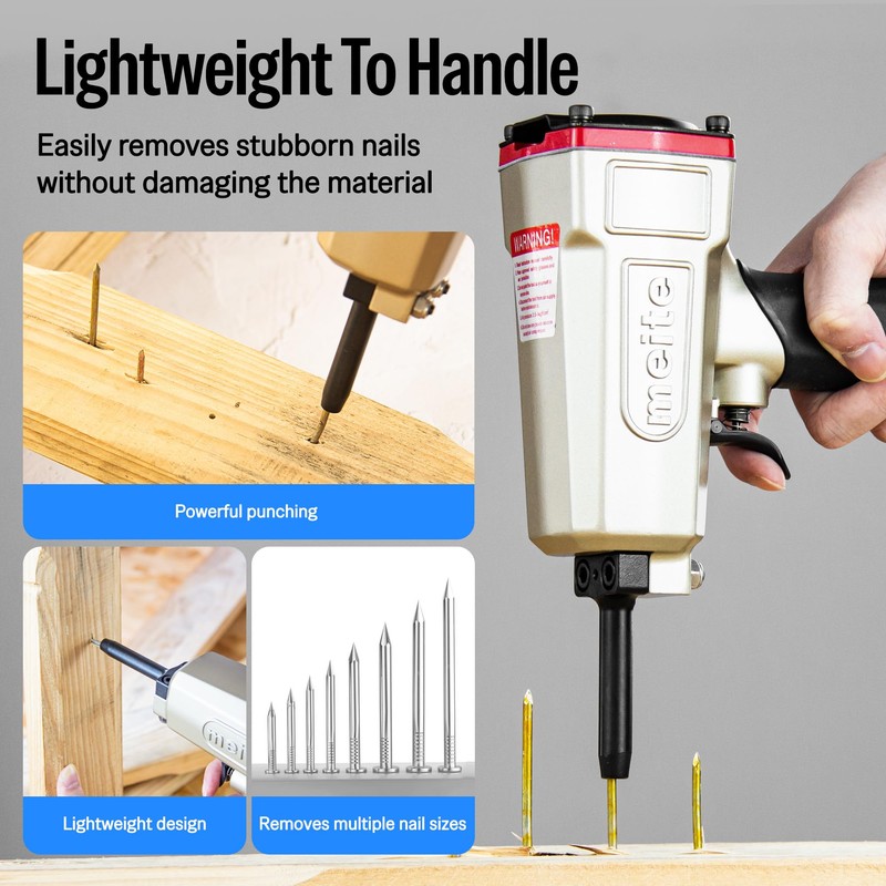 - 【Lightweight & Durable Construction】The denailer air gun weighs only 2.44 lbs—easy to handle, and offers fatigueless operation during prolonged use with a comfortable rubber grip. Equipped with a high-strength firing pin and durable bumper, the nail remover ensures reliable performance and long-lasting durability.