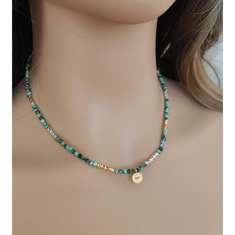 - Design: This beaded necklace showcases a unique modern design style. Finely cut micro turquoise beads intertwine with gold/silver-plated small stones, creating an artistic piece that combines delicacy and fashion