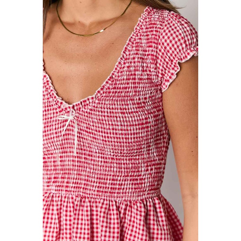- Features: Summer rompers for women 2025 featuring short puff sleeves, v-neckline with a ribbon bow detail at bust, gingham print, plaid romper dress, shirred elasticated bodice, ruffle details on neckline and sleeves, invisible zipper at back,romper shorts for women,mini length. This playsuit is an effortlessly stylish pick to add to your fit rotation