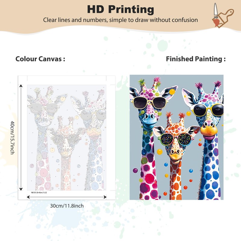 MEIYUDA DIY Paint by Numbers for Adults with Frame Cool Giraffes, Paint by Numbers Kits Animal Paint by Numbers, Arts and Crafts for Beginner Acrylic Pigment Drawing Paintwork Wall Art 30x40cm