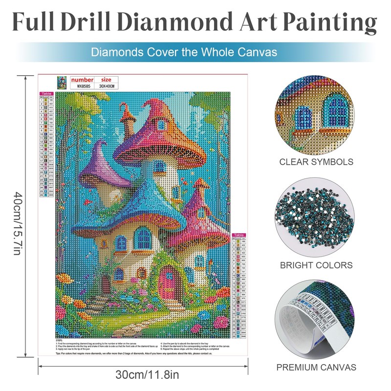 MEIYUDA Mushroom House Diamond Painting Kits for Adults,5D Landscape Diamond Art Kits,DIY Full Round Drill Fantasy Gem Art Painting Crafts for Home and Office Wall Decor 12x16inch