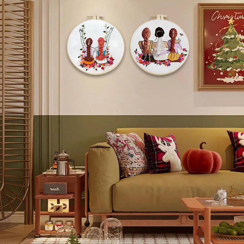 MEIYUETAOSI 2 Pack Embroidery Kit for Beginners, Embroidery Starter Kit with Pattern for Beginners, Adults Kids DIY Handmade for Decor Home Room (Girls)
