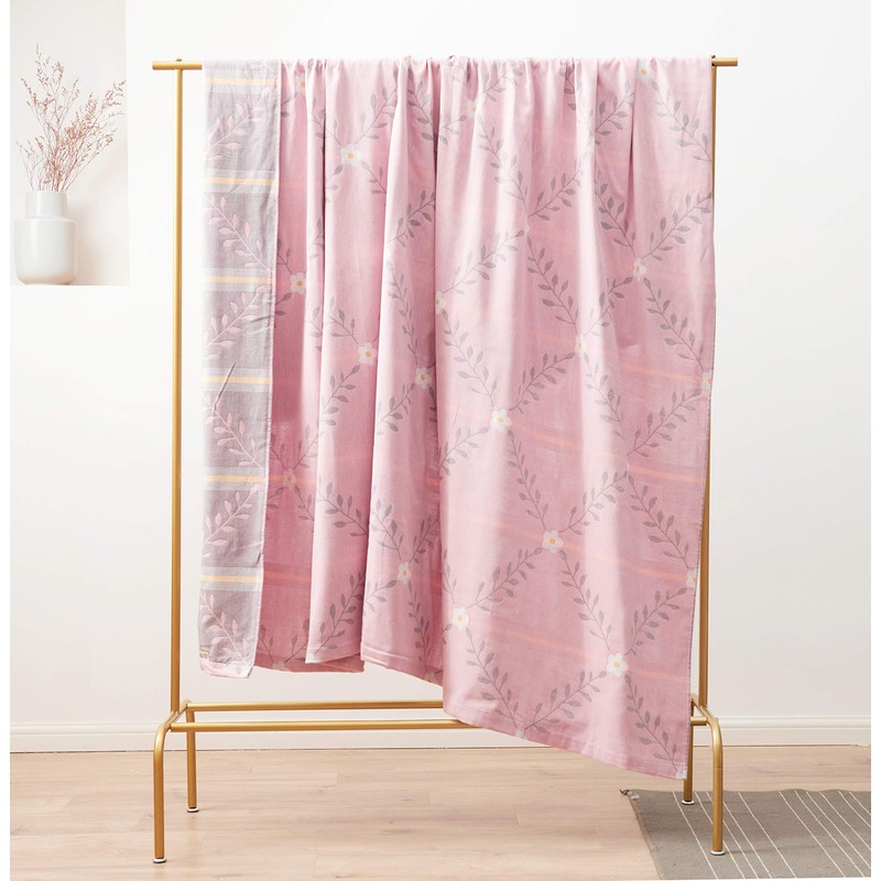 MEJU Flower Muslin Lightweight Summer Blanket for Bed Sofa Couch, 100% Combed Cotton 2 Layer Soft Warm Quick Dry Throw Blanket Bed Coverlet Sheet Flower Pink, Twin 60 in X 80 in