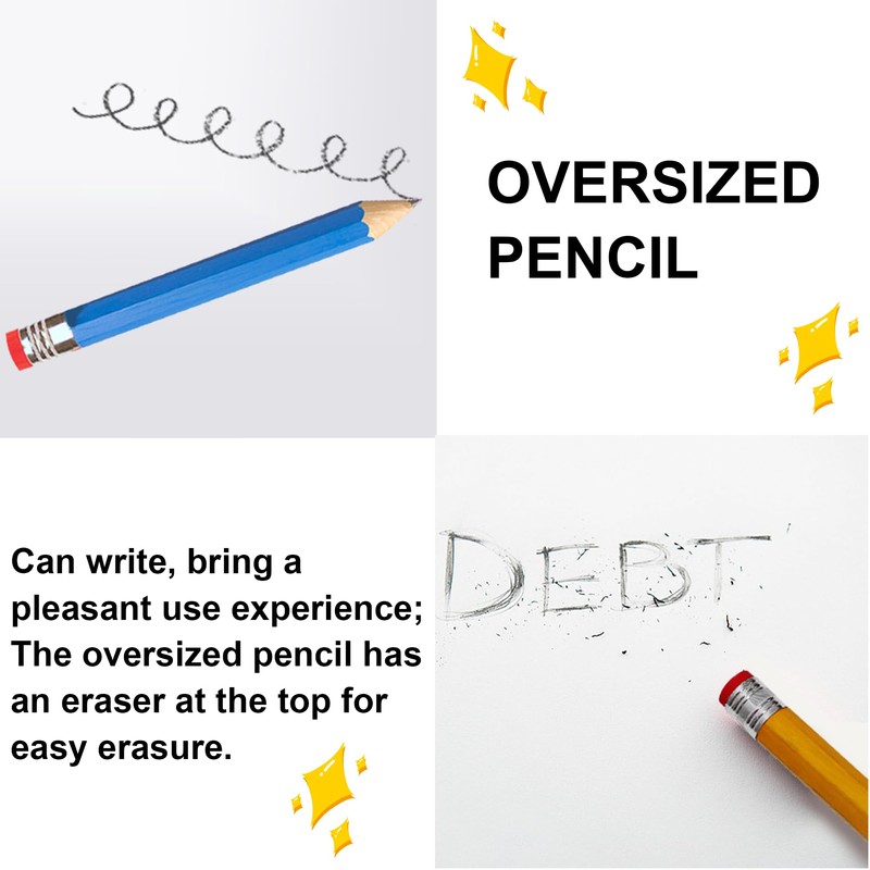 - 【Convenient Writing】The giant pen feels good to use and can be written, bringing a pleasant use experience; the extra large pencil has an eraser on its top for easy erasing.