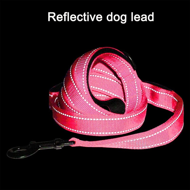 MEKEET Large Dog Lead Leash, 1.5m Double Handles Dog Lead Heavy Duty Strong Nylon Reflective Dog Leash with 2 Padded Handles Extra Traffic Lead for Safety Training Walking Medium Large Pets (Pink)