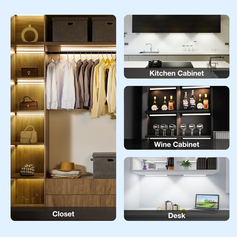 • 👍[Upgraded dimmable and color-adjustable closet light]: The under-cabinet light provides three different color temperatures ((3000K / 4500K / 6000K), which can be switched through the light switch or remote control. It uses 68 energy-saving LED lights and no glare With a frosted cover, the display index of the cabinet light reaches 90, the light is even and does not hurt the eyes. In addition, unlike the fixed brightness of other products, our indoor motion sensor lights can be infinitely dimme
