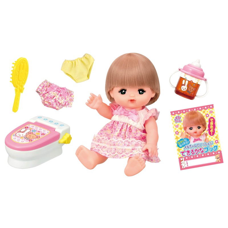 - Set Includes: Short hair melt-chan (with diaper), toilet, dress, baby mug (whipping), brush, and a dokana book