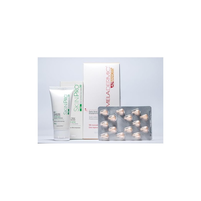 ๐ ๐ MELADERMIC | Kit Despigmentante Facial: Suero Facial Advanced Despigmentante + Skin Pro Gel Protector Solar Facial FPS 30 | Piel Uniforme | Kit Antimanchas ๐ ๐