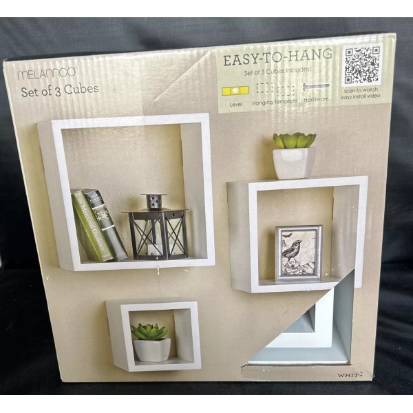 Set of 3 Melannco Floating Square Cube Shelves White for Bedroom Living Room. Comes in three sizes, 5x5, 7x7, and 9x9.