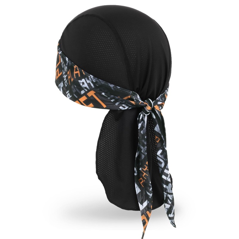 MELASA Cooling Durag Bandana Cap Hat Absorbs Sweat Headscarf Underhelmet Breathable Bicycle Headgear Running Hat Headscarf Men Cycling Motorcycling, Black orange print style