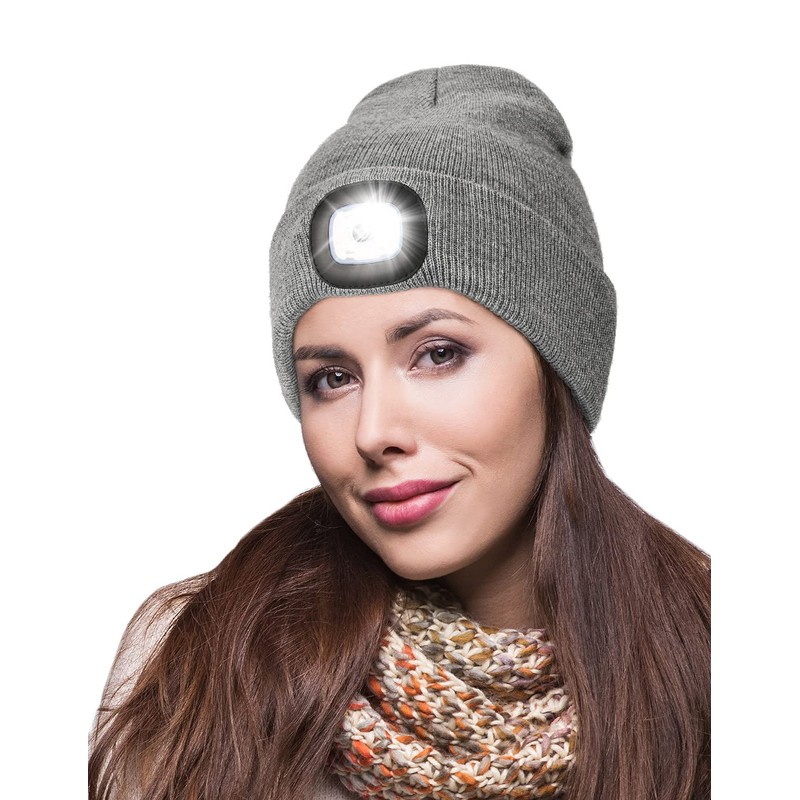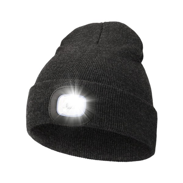 - Rechargeable Unisex knitted hat with 8 hours of runtime on a single charge, this LED beanie will always light your way when you need it. Its standard USB port allows you to charge in the car, with your computer, or using a portable power bank. No more re-purchase and charging batteries, no need extra charging cable.