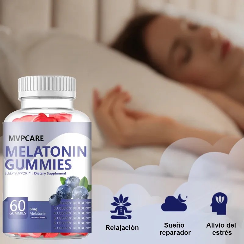 Las gomitas de melatonina MVPCARE son suplementos diseñados para apoyar un descanso reparador. Estas gomitas son una opción vegetariana, libres de OGM y no contienen gelatina. Además, están formuladas sin saborizantes, edulcorantes, colorantes ni conservantes artificiales. La base de pectina reduce la probabilidad de que se adhieran a los dientes y al envase, a diferencia de las gomitas de gelatina tradicionales. Con un agradable Sabor arándano, estas gomitas buscan ayudarte a dormir más rápido y a mantener el sueño durante más tiempo.