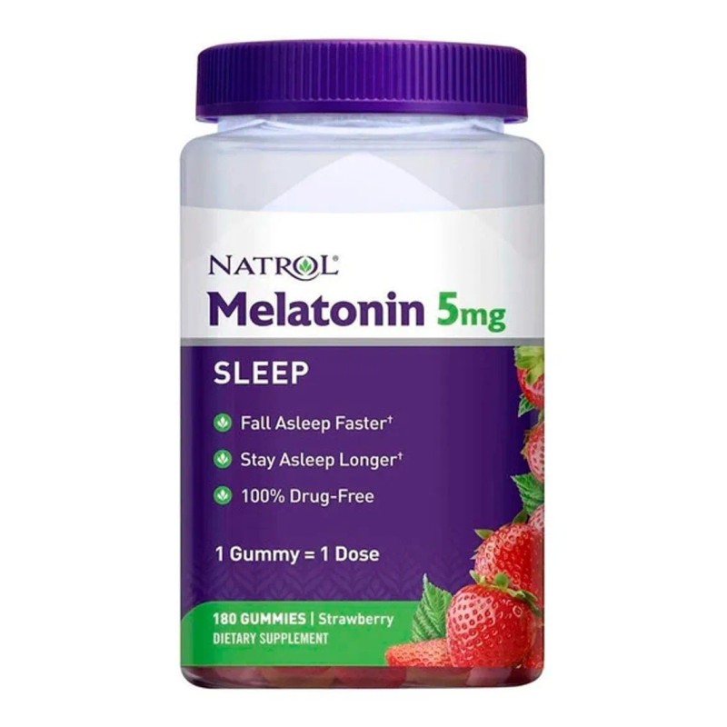 Melatonina Natrol 5 Mg | Tamaño Extra Grande | 180 Gomitas Sabor Fresa, Te Ayuda A Dormir Más Rápido, Quédate Dormido Más Tiempo Para Regula Los Ciclos De Día Y Noche O Los Ciclos De Sueño.
