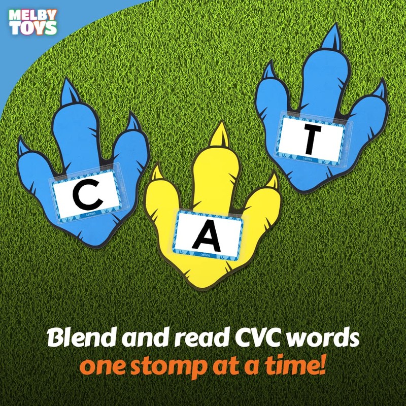 Melby Toys Dino Stomp Number & Alphabet Flash Cards I Preschool Learning Activities I Includes 26 Foam Floor Dinosaur Feet, ABC Flash Cards, Number Flash Cards & Phonics Flash Cards