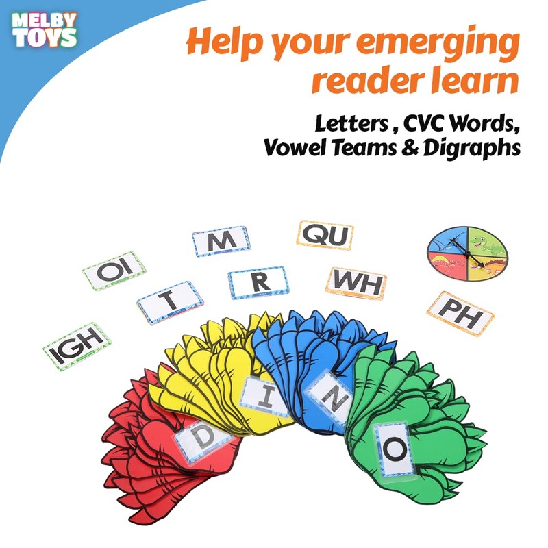 - 🦖 HELP YOUR DINO LOVER LEARN TO READ - Dino Stomp grows with your child. Starting with letters, our dinosaur flash cards also include blends, digraphs and vowel teams. After your child has mastered their letters, build words, one stomp at a time! A multisensory game great for dyslexic learners.