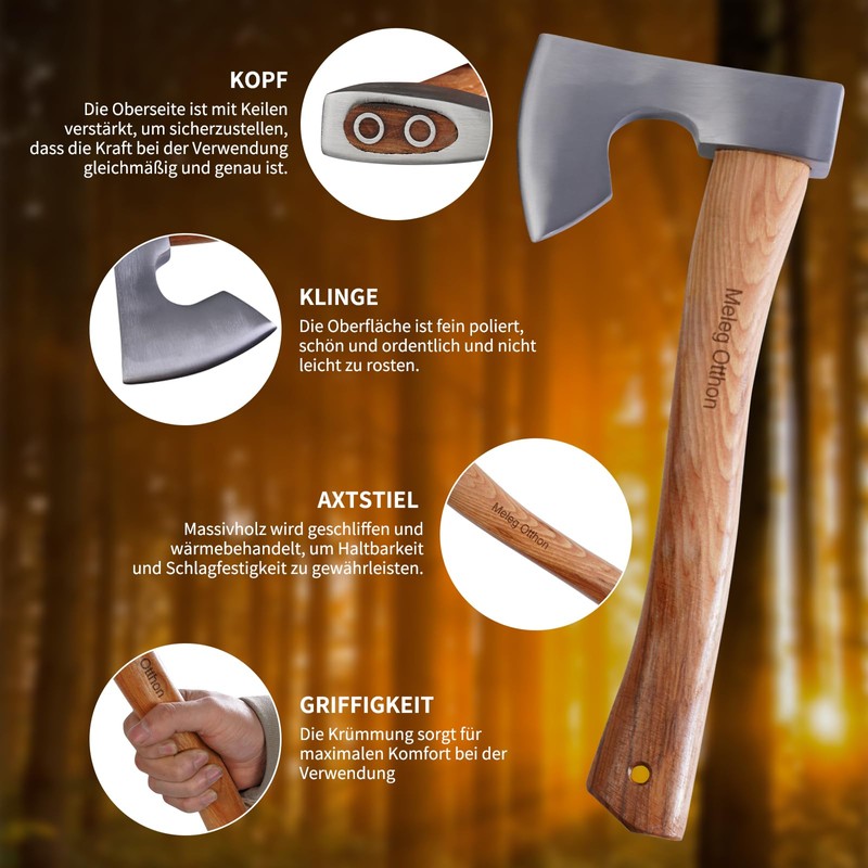 - Clever design: the ergonomic curve of the handle ensures maximum comfort when using the axe, and the reinforced wedge at the tip distributes the load to the left and right sides of the axe, ensuring a balanced and precise force when using the axe and reducing wrist fatigue during prolonged use.