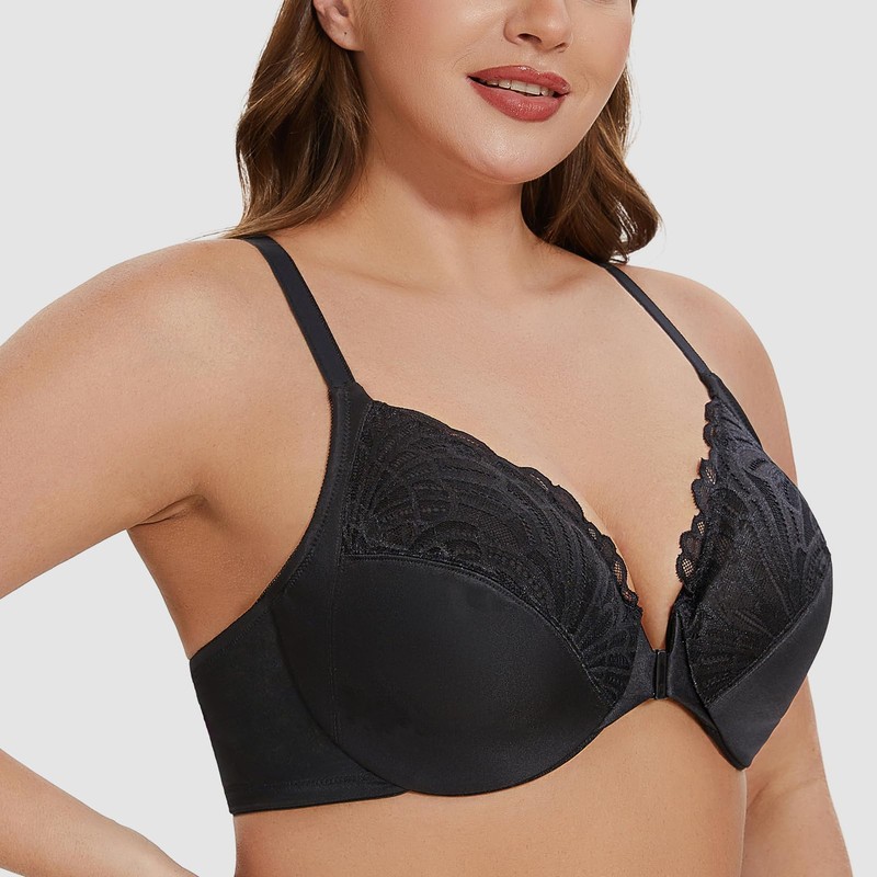MELENECA Women's Underwired Racerback Front Closure Lace Unlined Plus Size Full Coverage Bra, black, 105F