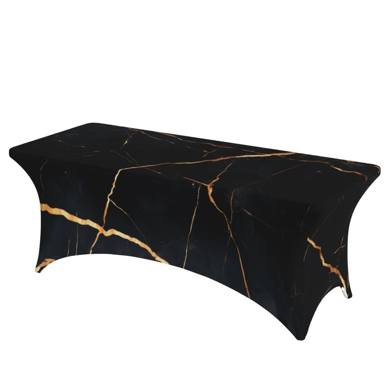 MELEYELIN Black Marble Spandex Tablecloth for Rectangular Tables, Fitted Tablecloth 6FT Stretch Spandex Table Covers for Folding Tables, Wrinkle Resistant Table Protector for Party Weddings BBQ