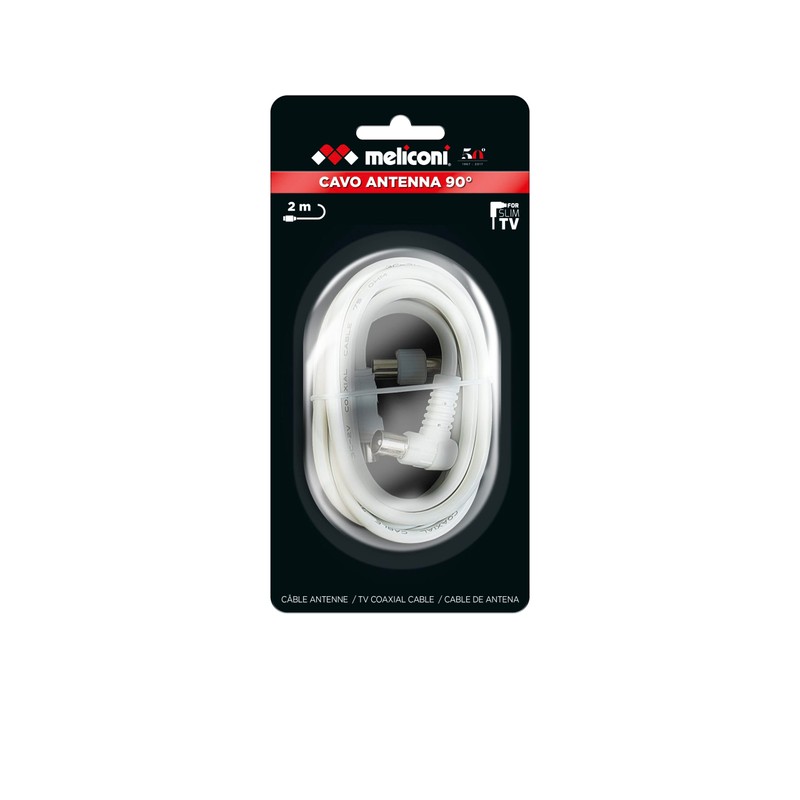 Meliconi Coaxial Aerial Cable Plug 90° Adapter M/M Included 2M