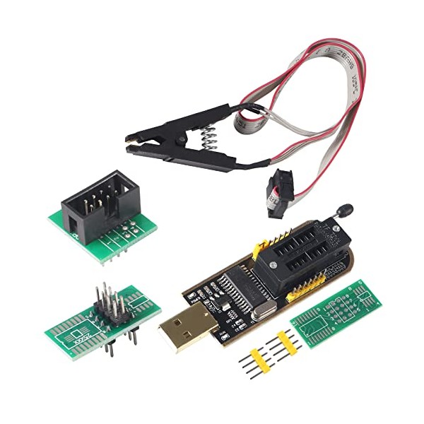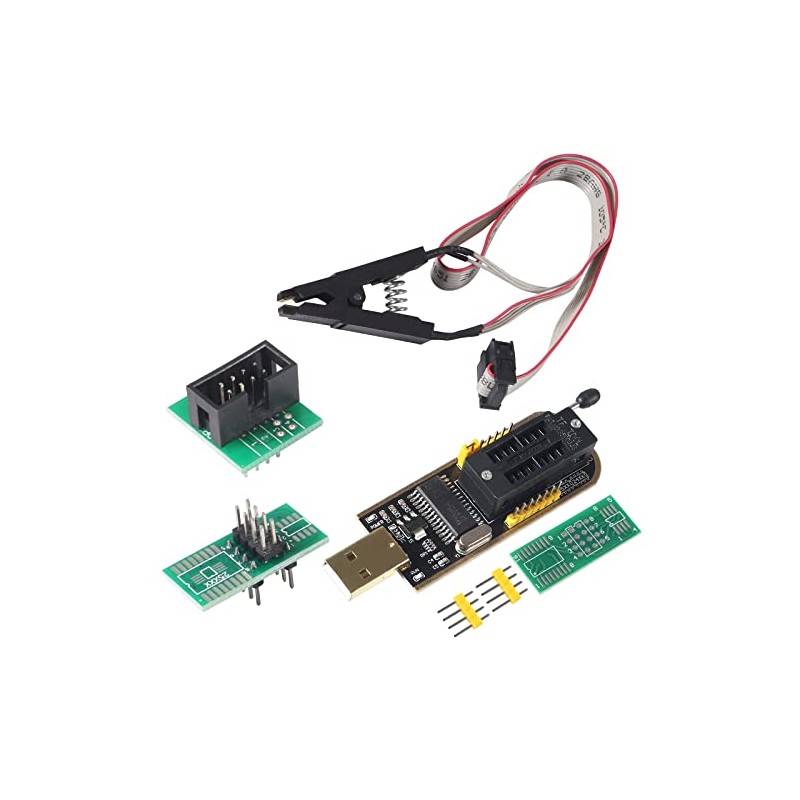 MELIFE SOIC8 SOP8 Flash Chip IC BIOS USB Test Clip Socket Adapter + BIOS USB Programmer Module Kit Set for EEPROM CH341A 24 25 Series (Clip + USB)