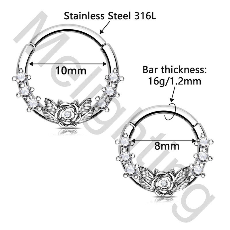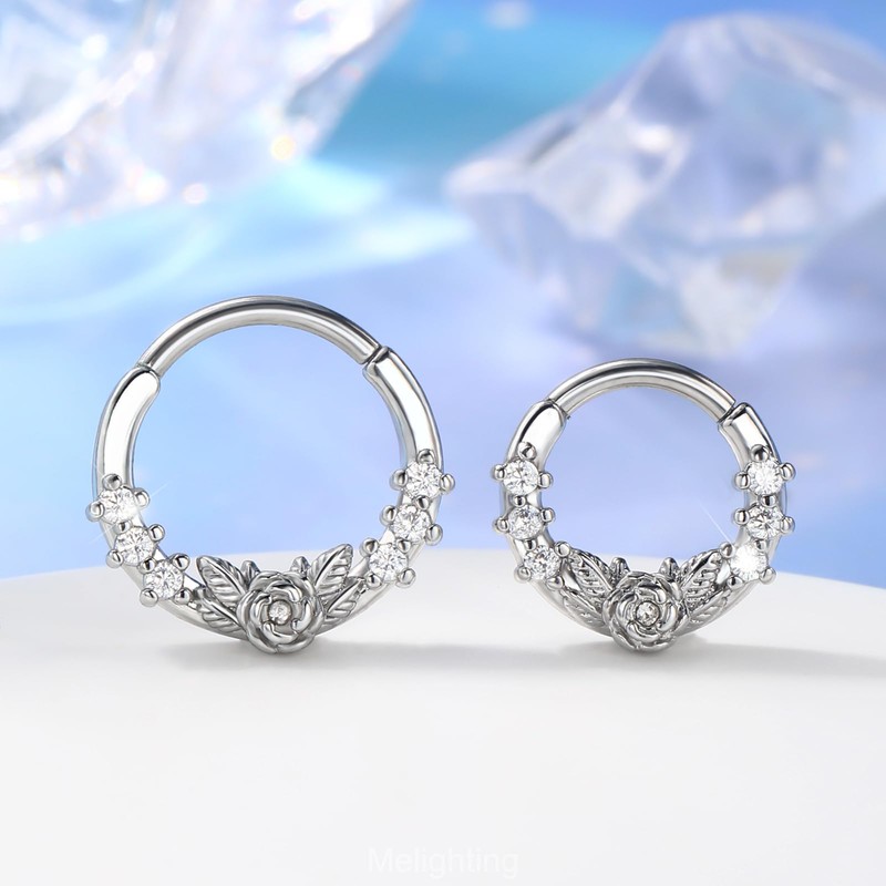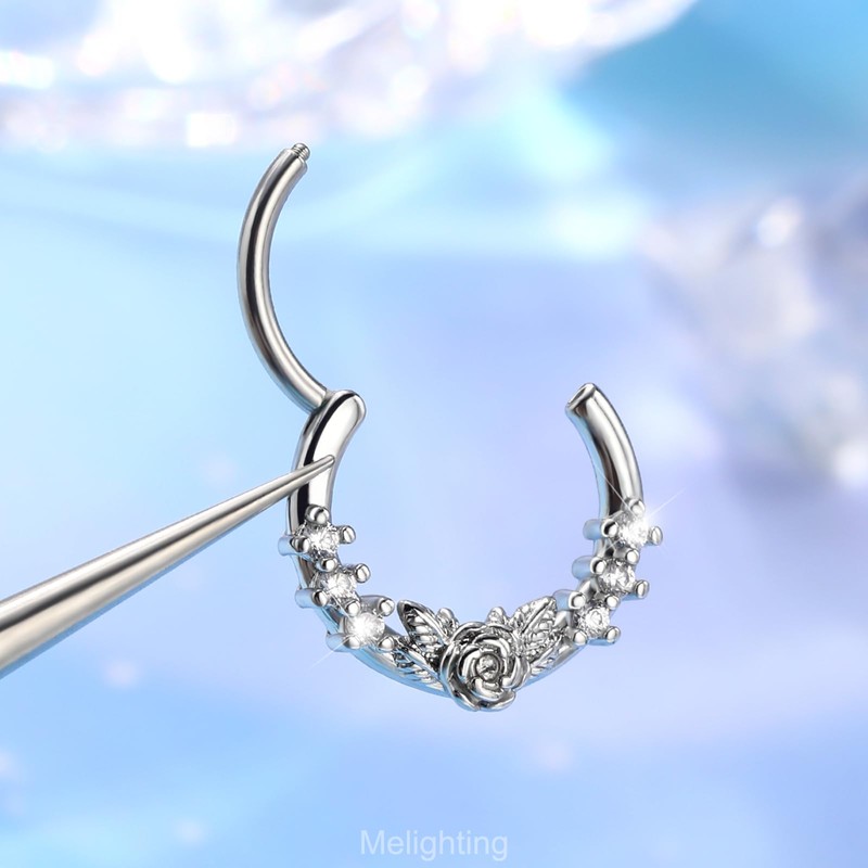 Melighting 16G Flower Septum Ring Rose Septum Jewelry Clear CZ Stainless Steel 316L Cartilage Earring 10 mm Daith Piercing Jewelry For Women Septum Clicker For Men