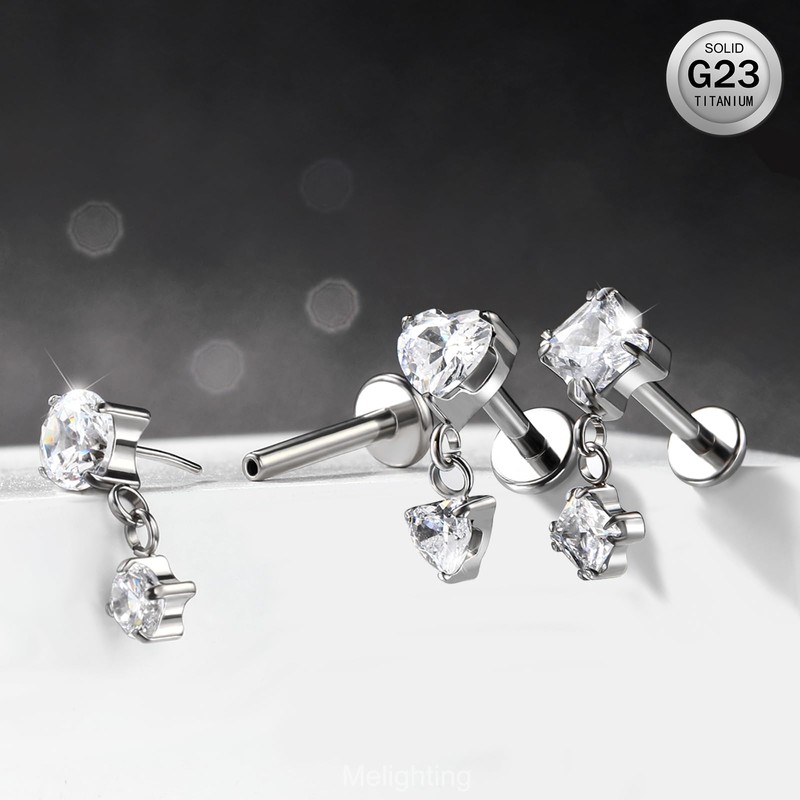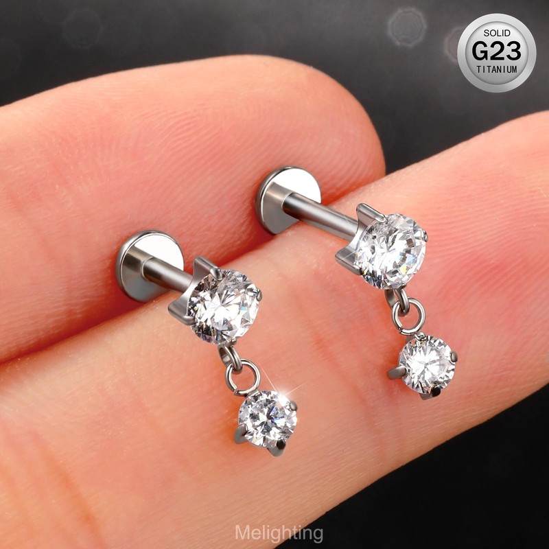 • Style of Helix Piercing: Includes one 16G 6 mm round dangle threadless earring, made from G23 titanium and clear round CZ, perfect for complementing a wide range of outfits and styles