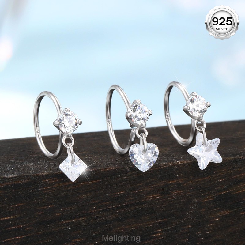 - Design of Nose Hoop: This 925 sterling silver nose ring features a clear CZ and a heart-shaped dangle. Simply twist open, insert, and twist shut to add a chic and elegant touch to your nostril piercing