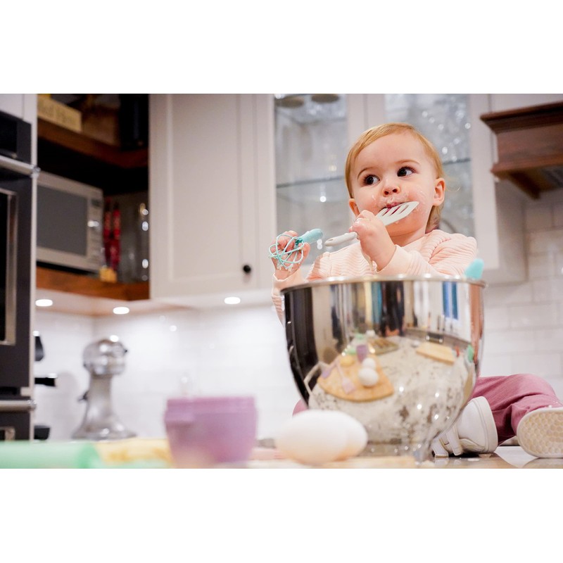 - Includes a mini rolling pin, silicone whisk, silicone turner, silicone spatula and silicone basting brush