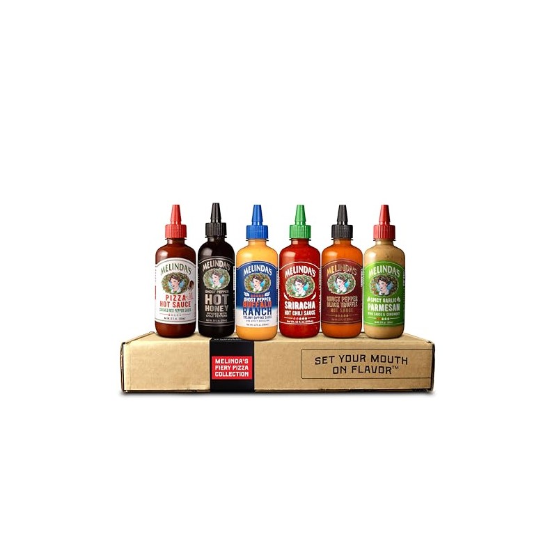 - SET YOUR MOUTH ON FLAVOR: This hot sauce sampler set doesn’t just bring heat to your favorite foods, it brings top-shelf flavor too. Whether you’re in the mood for a classic like ranch sauce, a sweet treat like Hot Honey, or our fan favorite Black Truffle, this set has you covered. Elevate your pizza game with Melinda's - because every slice deserves to be a tasty masterpiece