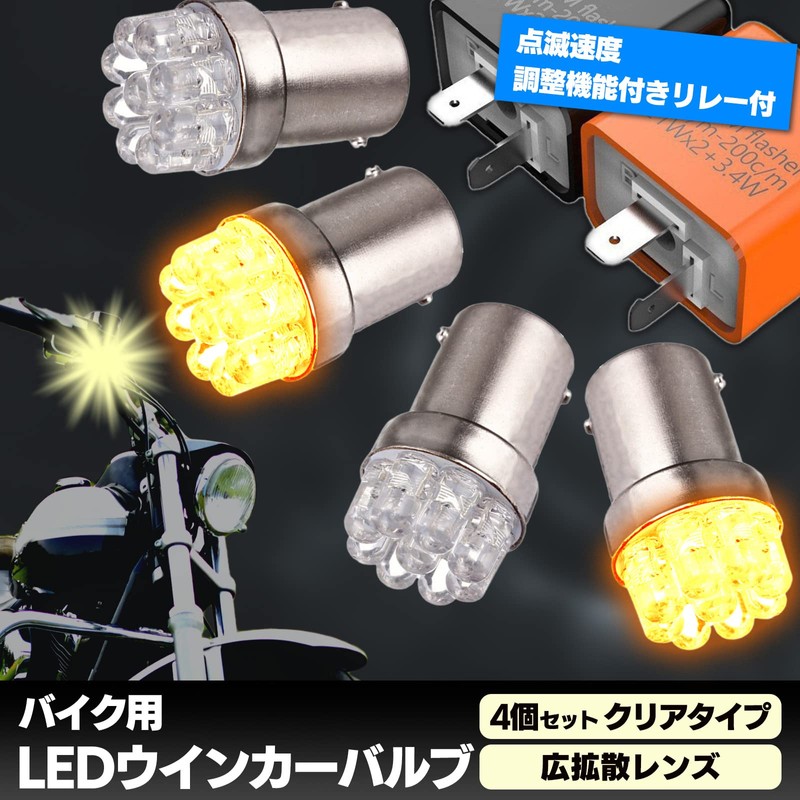 - The bulb comes in a set of 4. Also includes one 2-pin turn signal relay to prevent high flora with flashing speed adjustment. You can easily adjust the speed by turning the dial with a screwdriver or the like